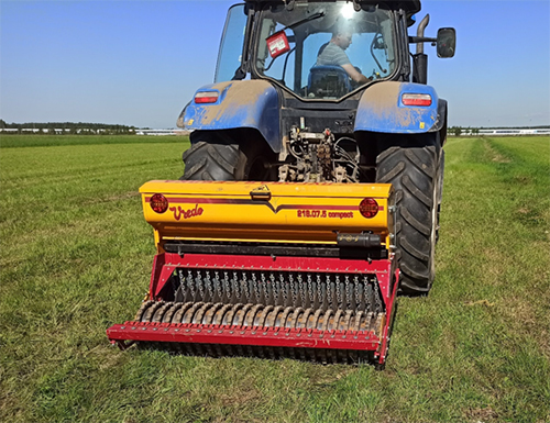 Дисковая травяная сеялка Vredo используется для подсева или засева лугов, бастбищ, сенокосов, спортивных площадок и больших газонов. Дисковая система помещает семена под поверхность, улучшая тем самым прорастание. Затем щели закрываются задней прокаткой, оставляя незначительное нарушение поверхности.